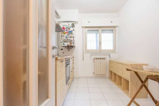 La soluzione si trova al piano terra della scala B del fabbricato e si compone da comodo ed ampio ingresso con armadiatura a sei ante, cucina, due camere da letto e bagno.