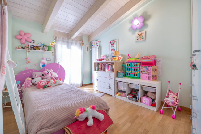 La zona notte, situata al piano superiore, è composta da due camere da letto matrimoniali spaziose e luminose, bagno con finestra ben rifinito e dotato di tutti i comfort, una cameretta, uno studio, una cabina armadio finestrata con accesso ad angolo lavanderia esterno.